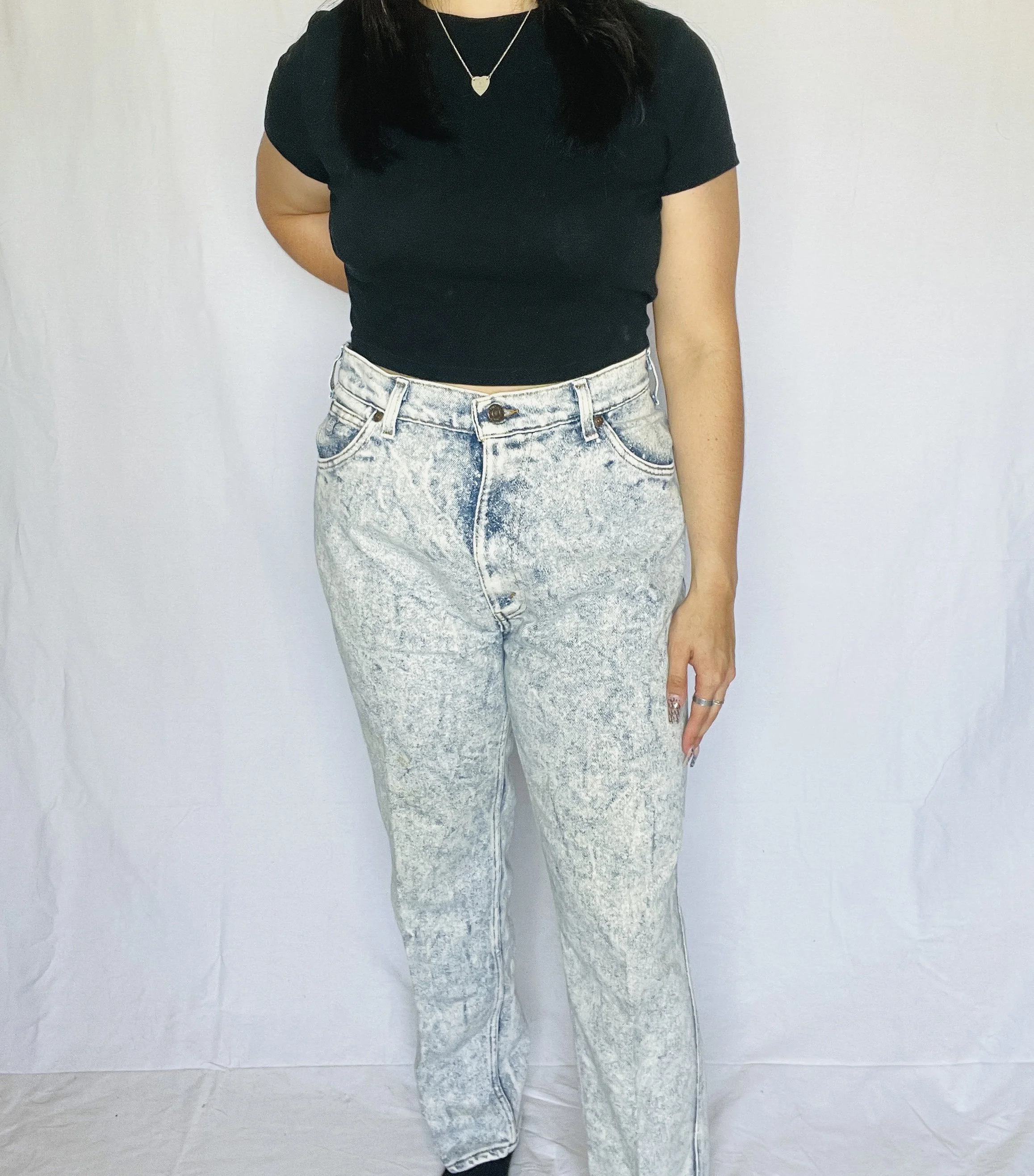 Vintage 90's No Boundaries Denim High Waisted Jeans. Beautiful fit. great fading and small stain bottom right leg. Size tag 13, measurements below. No returns, all sales final. Model is 5'4. Size 28. 12" Rise 28" Waist 44" Hip 29" Inseam 41" Outseam